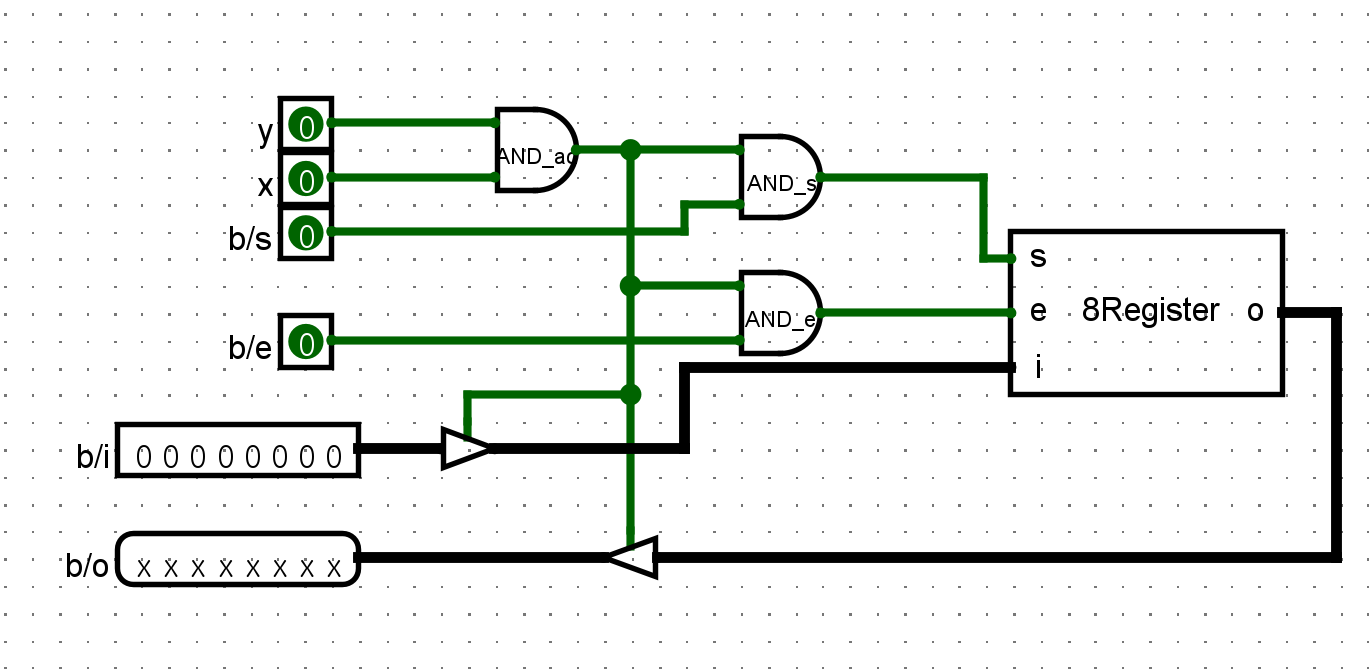 y와 x로 address를 받고 set을 통해서 레지스터의 set을 활성화 해준다. 이로써 b의 input은 입력된 값을 전달하고 b의 Enabler를 통해서 output의 결과가 전달된다. 이의 구조를 통해서 우리가 배운 Decoder와 Register,RAM으로 256개의 1RAM을 구성하고 있는 256RAM을 구성할 수 있다. 크기가 큰 만큼 제작하는데 시간이 많이 소요되어서 해당 강의 미리 준비된 학습자료를 통해 256RAM을 활용하였다.