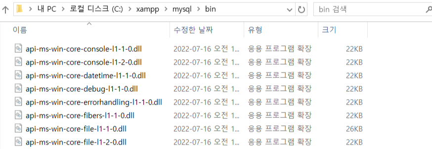 ๋จผ์ ๊ธฐ์กด๊ณผ ๋งค์ฐ ๋น์ทํ๋ค. cmd๋ฅผ ์คํํ๊ณ ๋ณธ์ธ์ด XMAPP์ ์ค์นํ ๋๋ผ์ด๋ธ๋ฅผ ํ์ธํด์ผ ํ๋ค. ๊ธ์ด์ด๋ C๋๋ผ์ด๋ธ์ ์ค์นํ๊ณ ํด๋น ๋๋ผ์ด๋ธ์ XMAPP์ด ์กด์ฌํ๋ค. ํด๋น ํ์ผ์ ๋ค์ด๊ฐ๋ฉด mysqlํ์ผ์ด ์กด์ฌํ๊ณ ํ์ ํด๋์ binํ์ผ์ด ์กด์ฌํ๋ค.