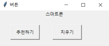 btn1 = Button(root, text = "추천하기", width=10, height=2, command=proc)