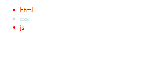 ์ฐ๋ฆฌ๊ฐ ์์ฑํ css์ ์บ์ค์ผ์ด๋ฉ ๊ท์น ์ค ๊ฐ์ฅ ๋ฎ์ ์์๋ li tag ์ ํ์์ด๋ค. ๋ฐ๋ผ ์ด ์ ํ์๋ฅผ ๊ฐ์ฅ ์ฐ์ ์์๋ก ๋๊ธฐ ์ํด์๋ !important ๋ฌธ๋ฒ์ ์ฌ์ฉํ๋ฉด ๋๋ค. ๊ทธ๋ ๋ค๋ฉด ๋๋จธ์ง ์ฐ์ ์์๋ค์ ๋ชจ๋ ๋ฌด์ํ๊ณ ๊ฒฐ๊ณผ๊ฐ ์๋์ ๊ฐ์ด ๋์จ๋ค.