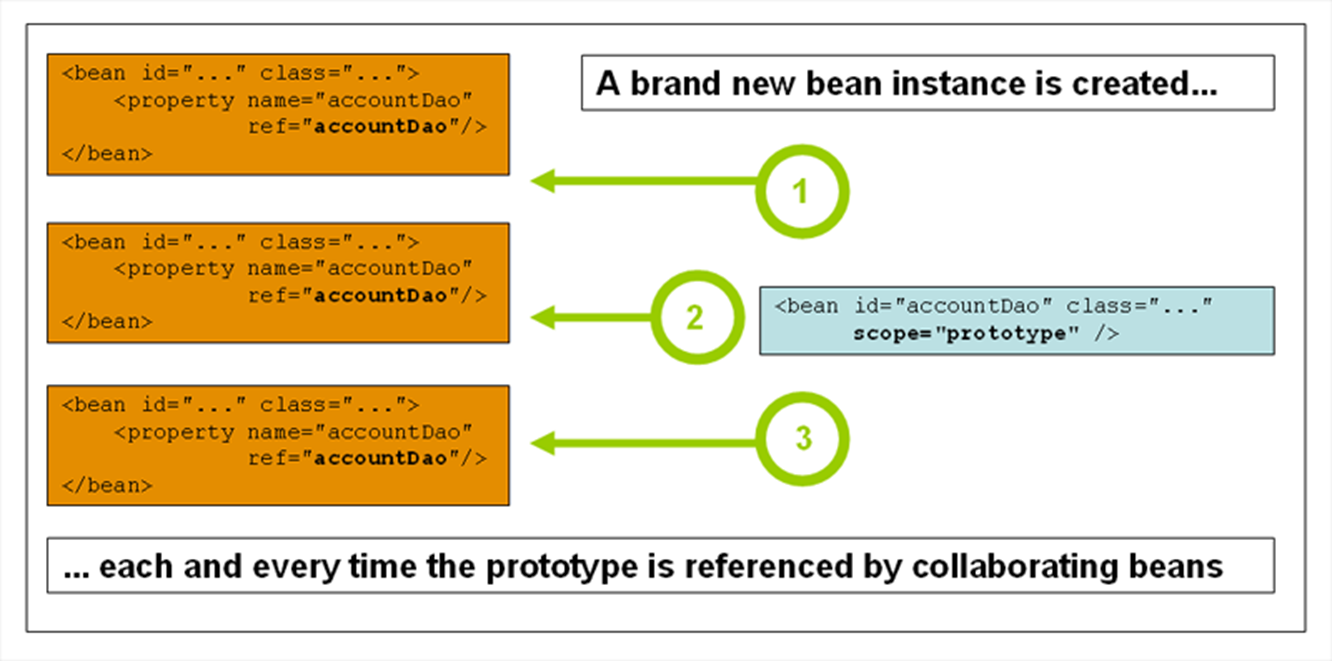 <bean id="myBean" class="com.example.MyBean" scope="prototype">