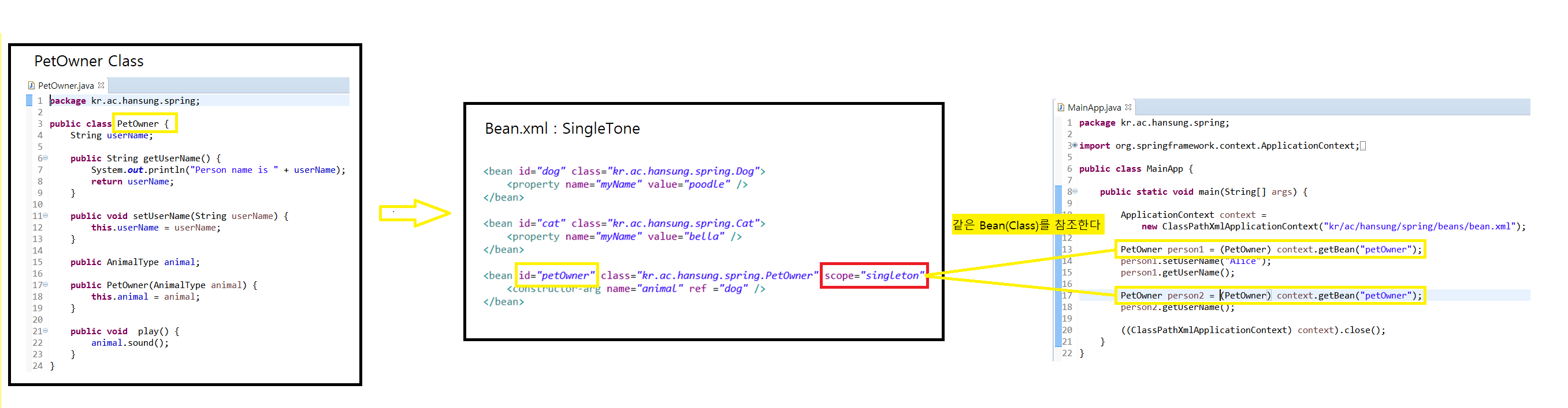 <bean id="dogId" class="kr.ac.hansung.cse.animals.Cat">