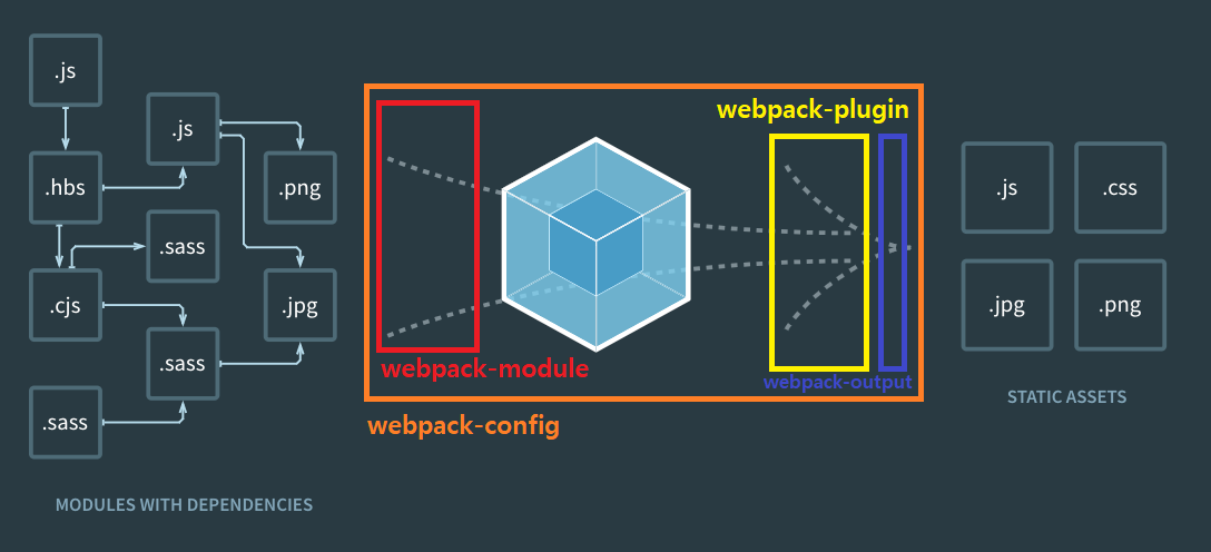 webpack is a module bundler. Its main purpose is to bundle JavaScript files for usage in a browser, yet it is also capable of transforming, bundling, or packaging just about any resource or asset.