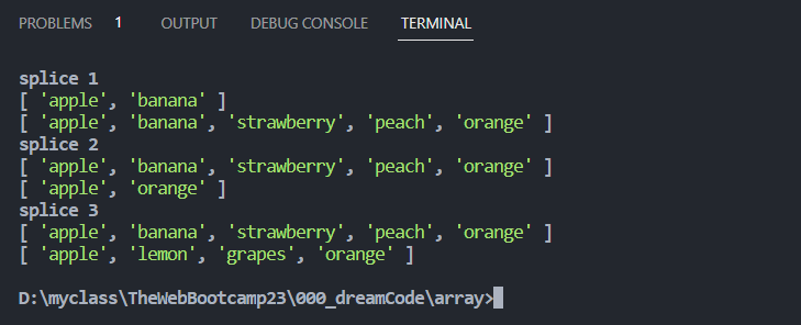 console.log('splice 1');